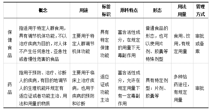 保健食品,是指声称具有保健功能或者以补充维生素、矿物质等营养物质为目的的食品。保健食品不是药品,二者在管理上和应用上有较大的区别:前者不以治疗疾病为目的,而可以调节机体的某些功能,适宜于特定人群食用。具体区别如下。