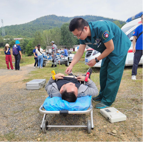 确山县中医院保障小组为保障公益救援技能交流大会安全有序进行,守牢安全底线,准备了各种急救外伤药品及设备,安排医护人员在大会交流期间时刻值守,对场上意外出现的擦伤、扭伤、肌肉痉挛、低血糖、晕厥等情况给予及时处理,为救援队伍随时提供各种专业服务,包括活动前保护,损伤处理及肌肉拉伸放松、按摩等,帮助减少剧烈活动后的不适感,为此次民间交流大会提供了有力的医疗保障。