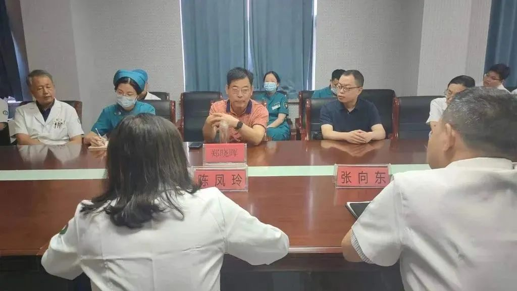 郑晓晖仔细聆听汇报,深入了解相关数据、指标,指出该院在三级胸痛中心建设中存在的不足,对于建设的重点和难点给予全面指导。
