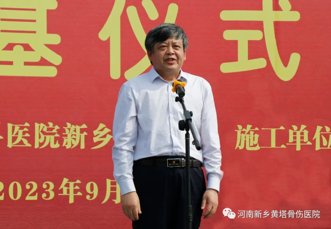 2023-9-8 来源:医药卫生网 - 医药卫生报 浏览:次 【查看证书】医药卫生网讯(记者常俊伟 通讯员胡淑娟)9月6日,新乡黄塔骨伤医院(新乡骨科医院)建设项目开工奠基仪式隆重举行。新乡市卫健委主任王培山,凤泉区委副书记、区长丁文广,副区长许艳伟,区卫健委主任高志然,河南日月投资集团有限公司理事长、滑县骨科医院院长明新仕,滑县骨科医院行政院长、新乡黄塔骨伤医院院长明新会出席奠基仪式。凤泉区委书记杨洁致辞,王培山宣布奠基仪式开始。