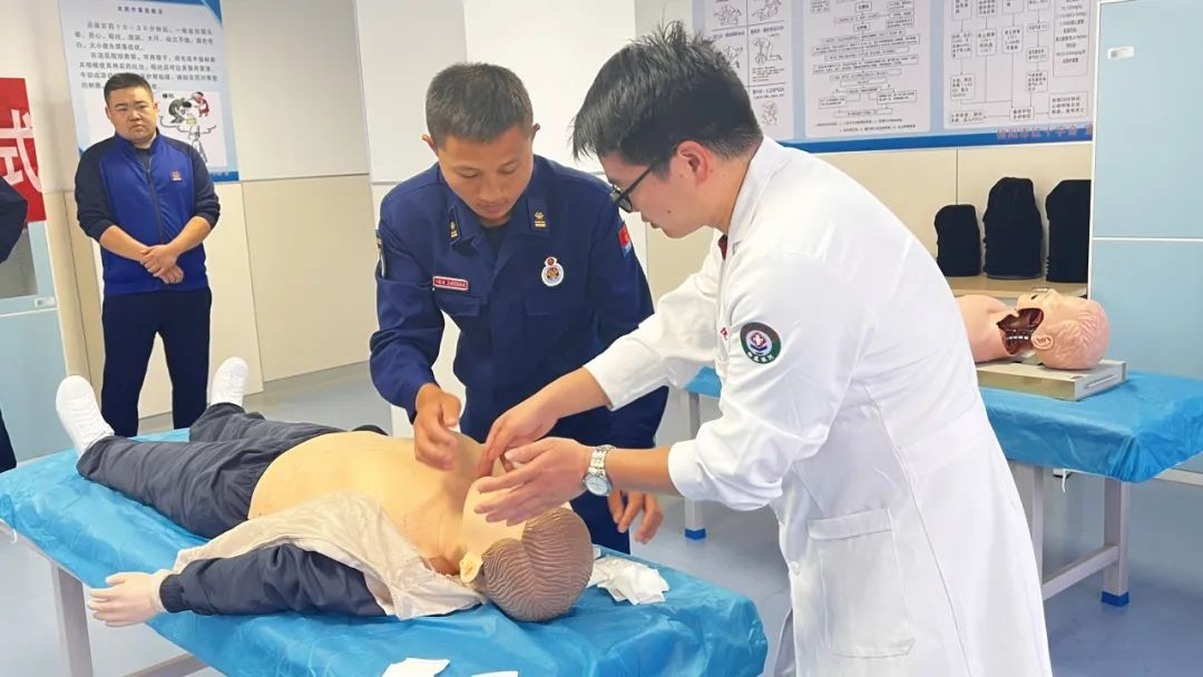 信阳职业技术学院附属医院介绍说,在信阳市红十字会高级应急救护培训师、信阳职业技术学院附属医院急诊医学科主任朱桂华的带领下,该院培训团队采取集中授课、示范演示、提问互动、实际操作相结合的场景化教学方式向全体消防救援人员分别讲解了心肺复苏、海姆立克急救法、AED(体外自动除颤仪)的使用、外伤患者的止血包扎固定、搬运技术以及豫南地区常见毒蛇、毒虫咬伤的院前急救等相关知识。针对消防员这一职业的特殊性,培训师们还为学员们着重介绍了烧烫伤等现场应急处置方面的医疗救护知识;参训学员们专心听讲、认真记录,在实操训练环节,学员们反复进行练习,力求熟悉每一个抢救步骤,掌握每一个技术要领,实操水平得到显著提高,进一步增强了消防人员现场救援应对的能力和自信心。