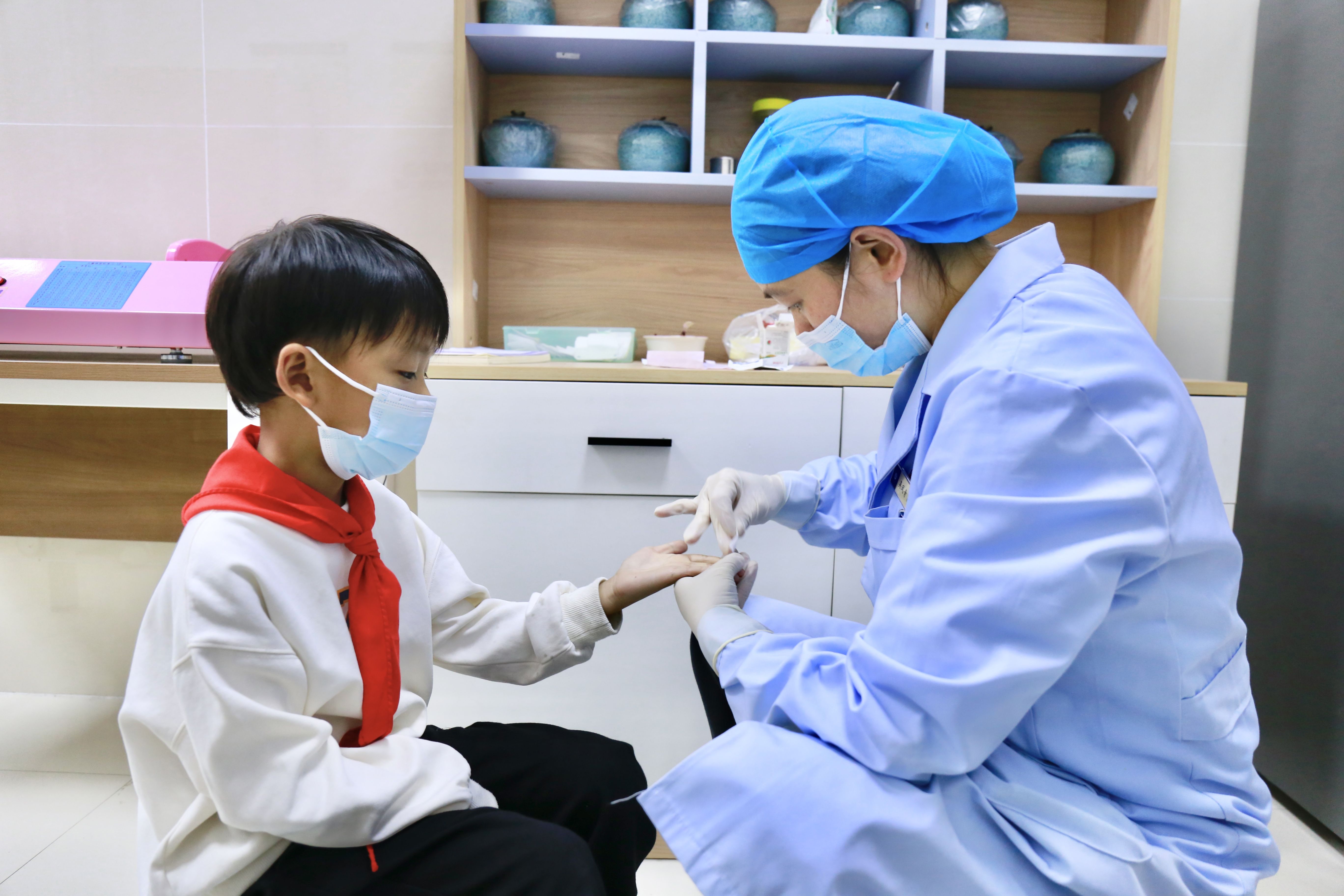 据吴凤青介绍,针刺四缝穴是在中医基础理论指导下,以针刺患者手掌2-5指近指关节中央放出少量血液,祛除邪气从而达到调和气血、平衡阴阳和恢复正气的一种治疗方法。其一可清泄胃肠之热,通调血脉;二可润补肺胃之阴液,以安肺胃;三可疏通三焦,通降胃肠。