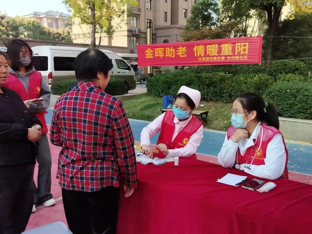 四是召陵区、郾城区分别联合市直医疗机构和街道社区开展“金晖助老·情暖重阳”等助老爱老义诊活动。活动中,医护人员认真细致地为每位老人测量血压、血糖、耐心询问老人的身体状况、病史、日常生活等情况。详细记录了老人的健康信息,为老人进行一对一的健康指导和诊疗建议。同时,青年志愿者们亲切地与社区老人们交谈,为他们科普了常见的老年病及预防保健等知识,进一步增强了老年人的健康意识和能力。
