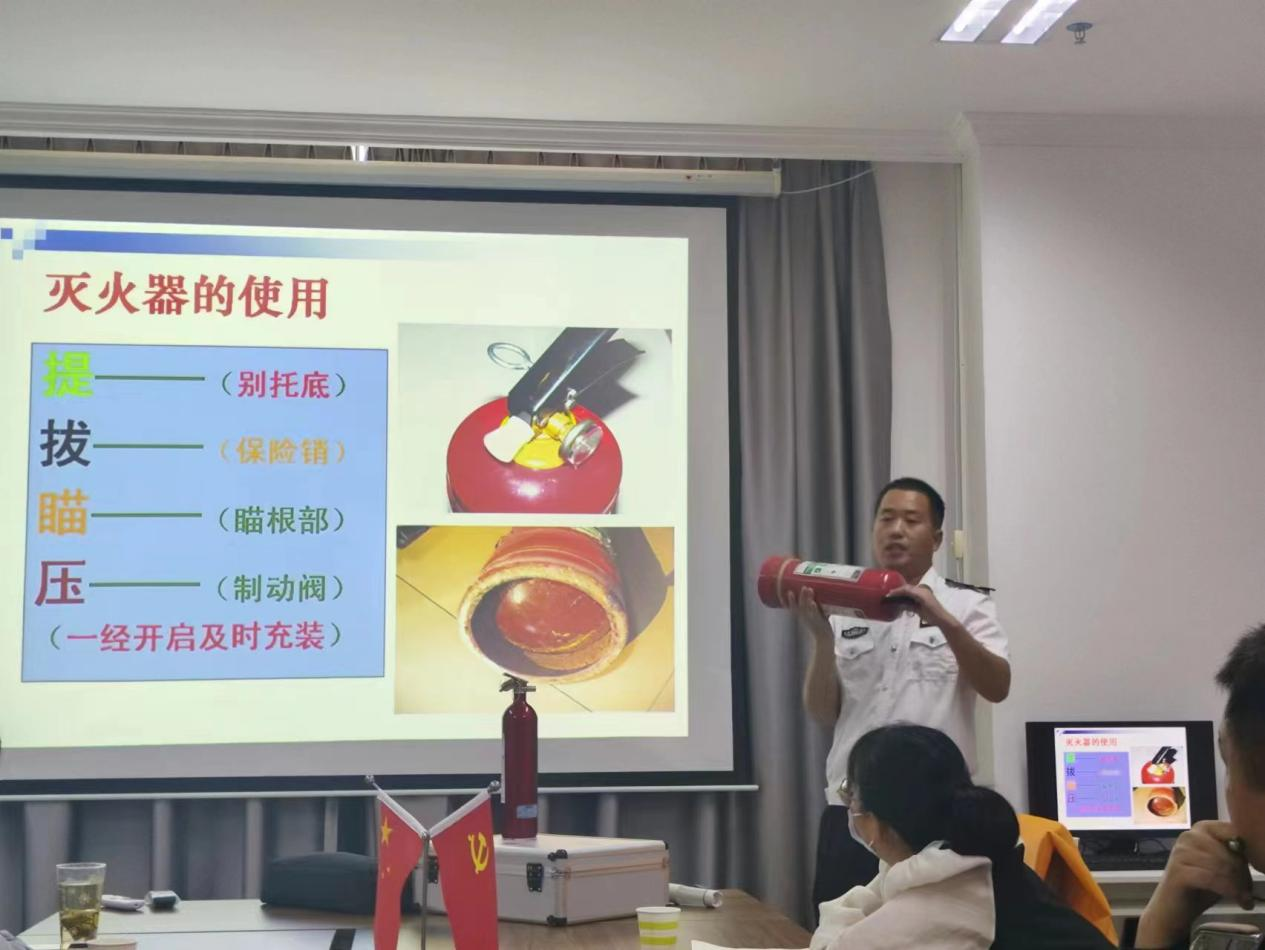 最后,樊凯通过宣传片,介绍了日常家用和工业用的消防安全必备品,并采取现场互动的方式,演示灭火器、灭火毯、防烟面罩等消防器材的具体使用方法,提高了全体干部职工安全防范意识和消防实操能力。