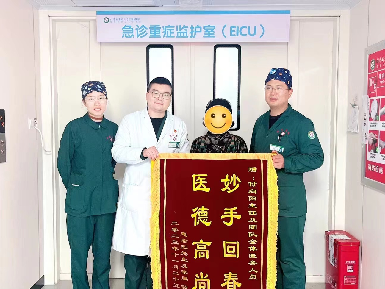 入院时,患者意识不清,生命体征不稳定,随时面临死亡威胁,经仔细询问得知患者发病前两天曾喝过酒,但酒的口感和日常饮用的不太一样,出于急诊医生的敏锐性,付向阳立即怀疑患者是“假酒(甲醇)中毒”,随后进行一系列检查,最终诊断为甲醇中毒、中毒性脑病、多脏器衰竭。经EICU医护人员两周的精心治疗,王先生神志逐渐清醒,脑功能恢复,目前已康复出院。本人和家属十分感激,特地送来锦旗表达谢意。