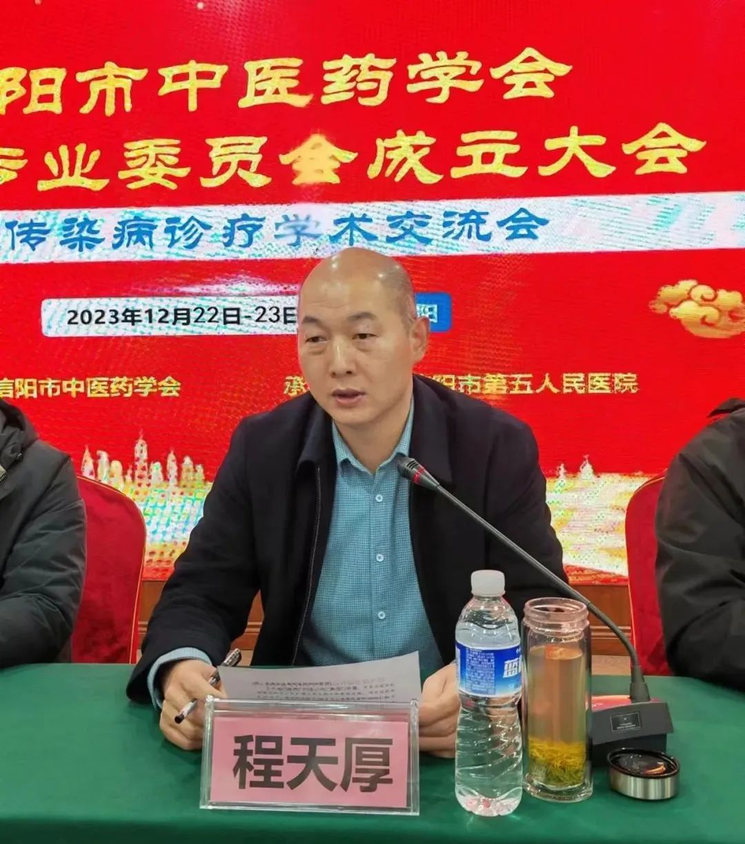 信阳市传染病医院党总支书记程天厚说:“市传染病医院坚持走‘大专科、小综合’的特色发展之路,近年来,在社会各界的关心帮助下,医院有了长足的发展和进步,已经构建起专业特色突出、诊疗技术精湛的以感染性疾病科、结核科为重点专科的传染病专科医院。中医药在传染病防治方面具有独特优势,在中华民族的繁衍生息中发挥着无可替代的作用。希望疫病专业委员会全体委员能够勤求古训,博采众长,传承祖国医学瑰宝,展现大医精诚,把知识转化为高超的诊疗技术和优质服务,增强人民群众的健康福祉。”