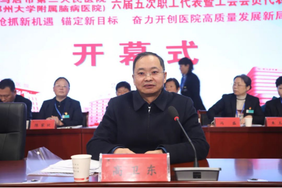 高卫东高度赞扬了医院工会过去一年取得的成绩。同时,对医院工会工作提出四点希望和要求:一是把准工会工作政治方向,扎实做好职工思想引领工作。把贯彻习近平新时代中国特色社会主义思想作为第一政治任务,深刻领会习近平总书记关于工人阶级和工会工作的重要论述,引领广大职工更加紧密地团结在以习近平同志为核心的党中央周围,坚定不移听党话、跟党走。二是创新工作方法,不断提升工会工作水平。不断改革创新,增强工作实效,努力建设学习型、服务型、创新型工会;创新工作理念,不断增强工会组织活力,切实提高服务职工的能力水平;自觉服务医院业务发展,凝心聚力推进医院综合医疗业务发展等工作。三是加强工会文化阵地建设,建设职工满意的职工之家。依托现有设施场地,加强工会文化阵地建设,为广大职工展现才华、拓展兴趣搭建舞台。四是强化工会干部队伍建设,团结带领职工促进医院高质量健康发展。工会委员率先垂范,带头严格自律、从严要求,实打实做好职工群众工作,努力在组织职工、动员职工、依靠职工、服务职工上下功夫,提高工会在职工中的凝聚力、影响力和吸引力,团结带领职工促进医院高质量健康发展。