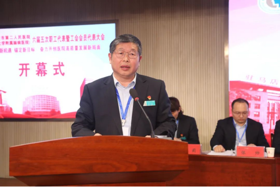 王育忠说,过去的一年,市二院以三甲复审和业务建设为抓手,深入实施“一体两翼”战略发展规划,各项工作取得了明显成效,顺利通过了“三甲复审”,并成为郑州大学附属脑病医院、郑州大学心理与精神健康研究院。过去的一年,市二院精准对接三级医院功能定位和新时期人民群众的健康需求,持续提高医院治理体系和治理能力现代化,医院的综合实力和社会影响力持续增强,社会效益和经济效益同步提升,为豫南区域患者提供了优质高效的医疗服务,为健康驻马店建设作出了积极贡献。他希望与会代表顾全大局,同谋改革发展之策,共商医院发展建设大计,充分发挥职代会的议事平台作用,广泛征集民智和民意,当好民情的反映者,民意的代言人,做到上情下达,下情上传,把职工群众的思想和行动统一到医院发展的总体目标上来,共同推动医院高质量健康发展。