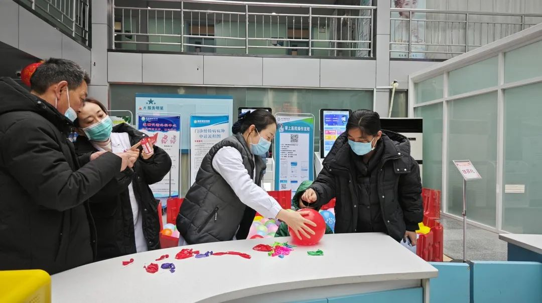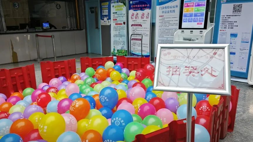 猜灯谜之乐,不仅在于猜中谜底之喜,更在于思考过程之趣。患者和家属们或凝眉沉思,或轻声自语,或相互讨论,其乐融融。一旦猜中,则喜形于色,恍如得宝。答对灯谜的人员可以来到抽奖区进行抽奖——(任选一气球,将其扎破,得到奖品,之后到兑奖区进行兑奖)。大家喜笑颜开,整个活动现场充满了欢声笑语,洋溢着祥和喜庆的节日气氛。