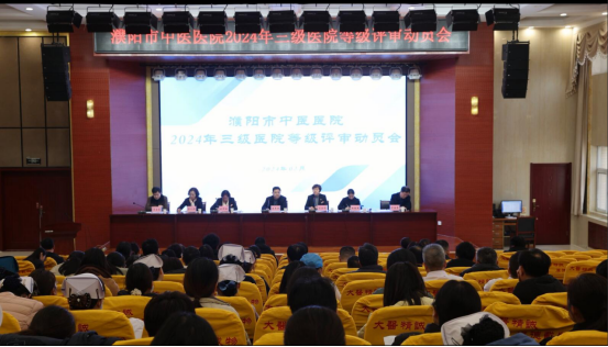 2024-3-6 来源:医药卫生网 - 医药卫生报 浏览:次 【查看证书】本报讯(记者陈述明 通讯员雷晓蕾 丁林国 吴霜)近日,濮阳市中医医院召开2024年三级中医医院等级评审动员会议。院长陈秀民出席会议并讲话,纪委书记齐美玲主持,全体领导班子成员、职能科室主任、各院区临床科室主任、医技科室主任和护士长100余人参会。