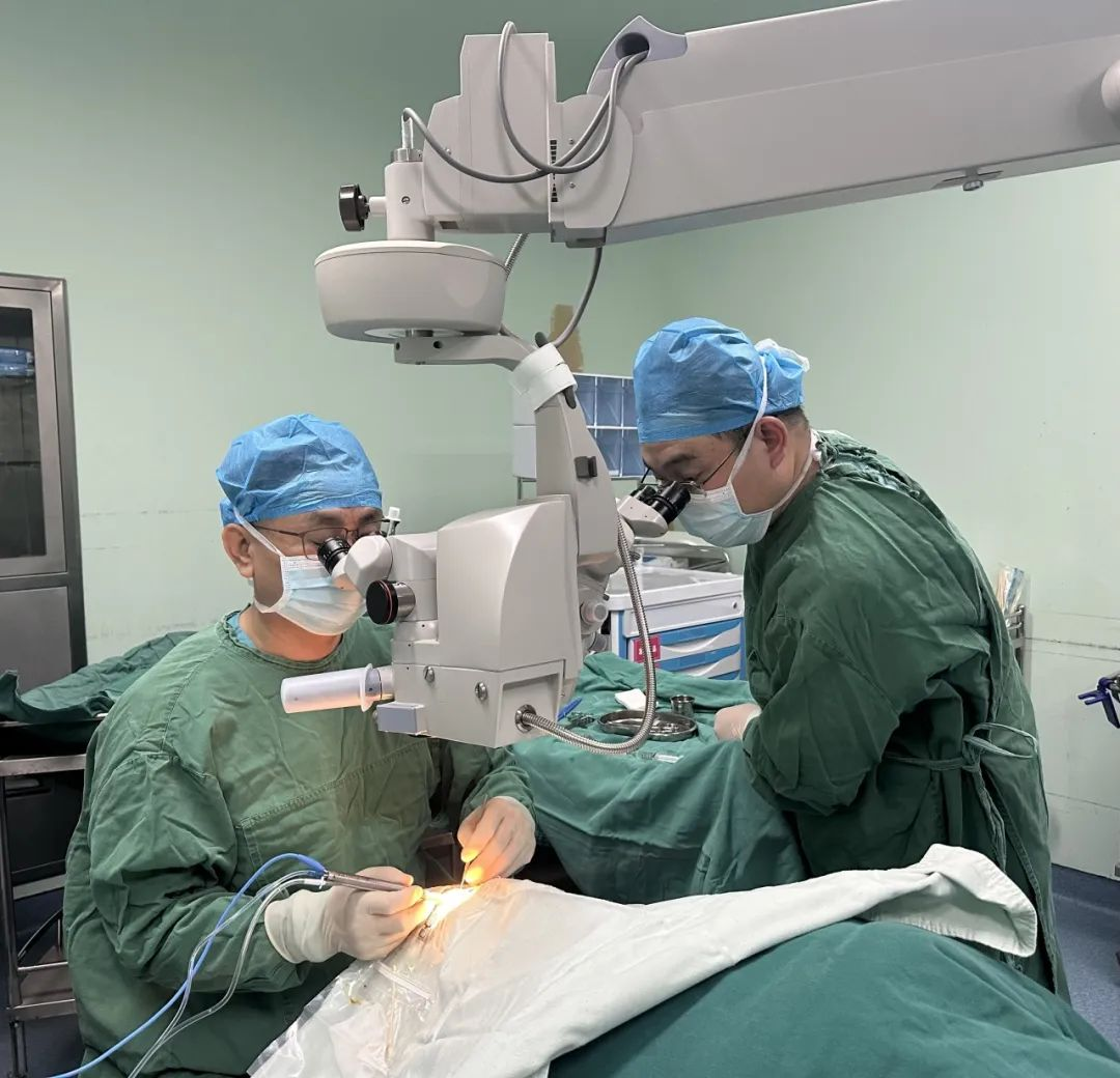 经过术前检查与准备,3月8日下午,薛红团队在安徽医科大学第一附属医院刘兴华教授带领下,为其进行了白内障超声乳化联合人工晶体植入术,短短十几分钟手术顺利完成。