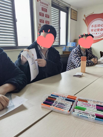治疗开始啦,首先参加活动的患者将自己的愿望写在一张纸上,然后折叠起来放到一个盒子里面,大家随意抽取,看完以后放到一旁,然后治疗师为患者发放画纸和彩笔,让患者将自己的愿望画到纸上,他们做得都非常认真,最后治疗师说:“你们轮流说出自己的愿望,并讲出自己画的内容和涵义,此时抽到这个愿望纸条的患者对分享的患者送上祝福和鼓励……”