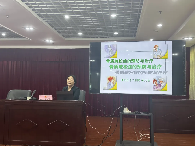 本次讲座,该院内分泌科、神经内科、老年病科(内一科)主任徐文俭就《骨质疏松症的预防与治疗》进行分享,徐文俭根据自身的专业知识和丰富的临床工作经验,通过生动的语言,借助多媒体课件,以图文、数据、具体事例等形式,从骨质疏松症的危害、骨质疏松症饮食指引以及骨质疏松症的防治措施等方面向大家进行讲解,并提醒大家在平时要进一步加强对自身健康问题的重视,鼓励职工们在日常生活中要科学饮食、适当锻炼,培养健康的生活习惯。