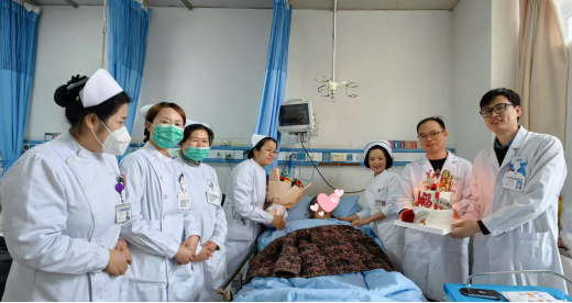 经过周密的手术策略制定和多学科的紧密协作,医疗团队为乔奶奶成功实施了经导管主动脉瓣置换和冠状动脉支架植入一站式手术。术后复查显示,主动脉根部支架固定良好、无瓣周漏,乔奶奶的精神状态明显改善,胸闷、气短、乏力等症状也得到了显著缓解。在医护人员的精心照护下,乔奶奶于4月4日康复出院。出院前,家属特地给TAVR团队赠送锦旗,表达他们的感激之情。当天,恰逢乔奶奶82岁生日,护士长王晓娜还特意为她准备了精美的生日蛋糕。这不仅是一次手术的成功,更是医学与人文关怀的完美结合。乔奶奶的故事,不仅见证了医学技术的进步,更展现了医护人员对生命的敬畏和对患者的关爱。我们相信,在医护人员的共同努力下,更多的患者将重获“心”生,迎来生命的曙光。