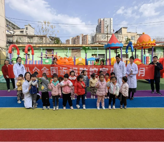 近日,信阳市中心医院综合医学科副主任赵明、副主任医师胡新苗、主治医师李博、张锐、梁登峰来到浉河区七彩虹幼儿园,为全体师生进行专题宣讲。本次宣讲从近视防控科普知识的宣讲、近视防控寓教于乐学生体验两个环节展开。