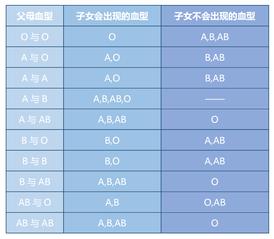 血型遗传规律表