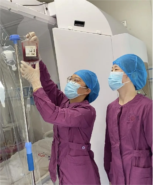患者于2022年10月份确诊为急性髓系白血病,接受8周期化疗后病情获得完全缓解,为获得更好的疗效和长期生存,血液内科主任医师徐征、副主任医师宋岭带领的移植小组在北大人民医院许兰平教授的帮扶下对患者病情进行充分讨论、评估,建议行自体外周造血干细胞移植治疗。在取得患者及家属同意和配合后,科室制定了完整、全面、详细的移植方案。