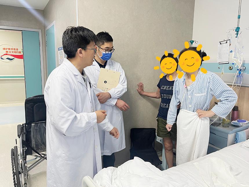 王刚成看了片子,坚定地说:“能做,住院吧!”手术后,张女士戴了两个临时造口解决大小便,王刚成说等里面长好了,还和正常人一样大小便,张女士又看到了希望,喜极而泣。