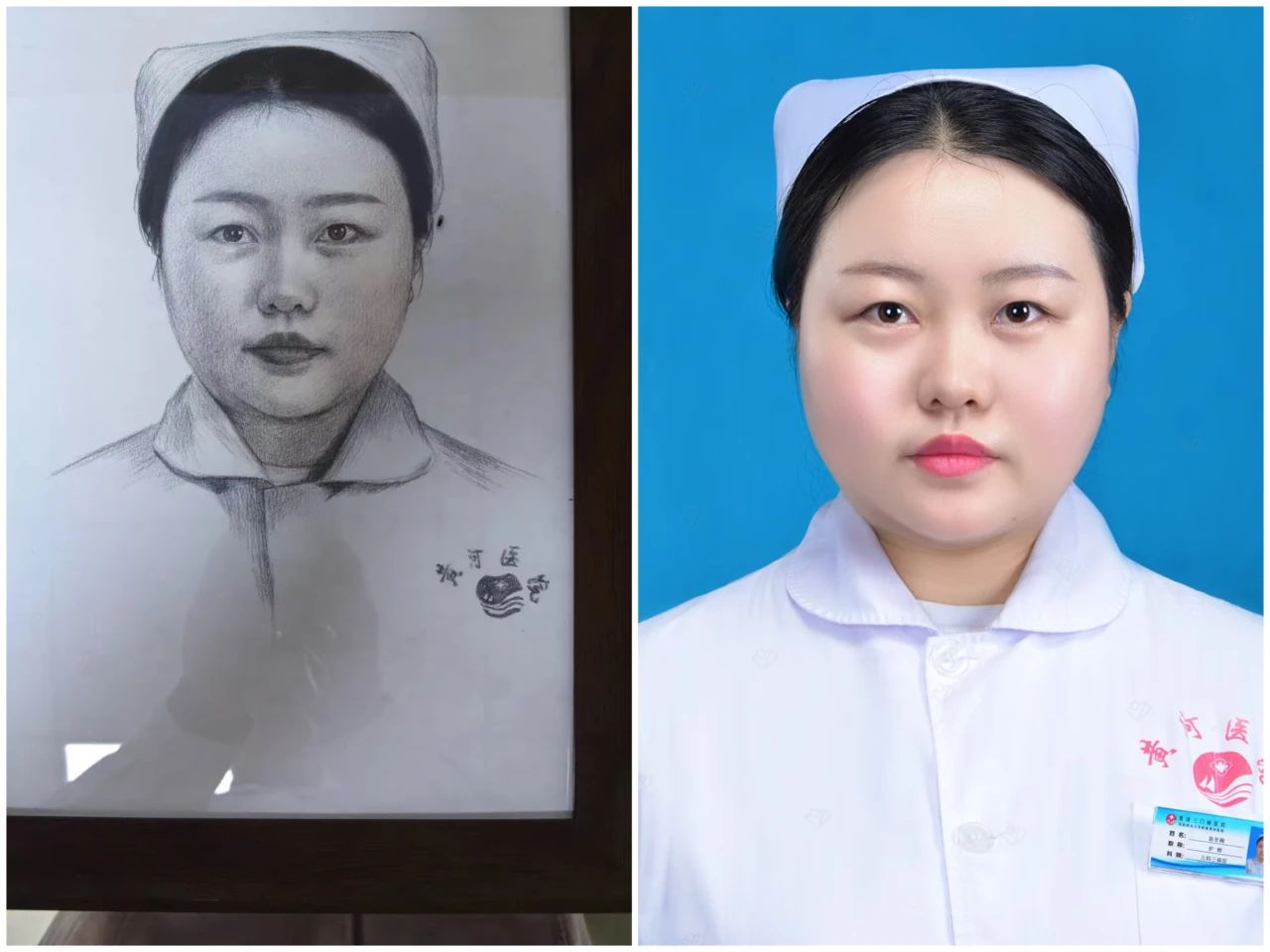 患者出院后,她的孙子用了7天给护士画了个人物像
