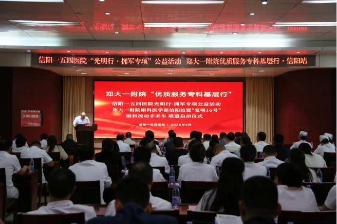 2025-9-17 来源:医药卫生网 - 医药卫生报 浏览:次医药卫生网讯(记者王明杰 通讯员张天歌)9月13日上午,信阳一五四医院内暖意融融,郑大一附院“优质服务专科基层行”信阳站落地行动、信阳一五四医院“光明行・拥军专项”公益活动暨“复明16号”眼科流动手术车联盟启动仪式在此举行。
