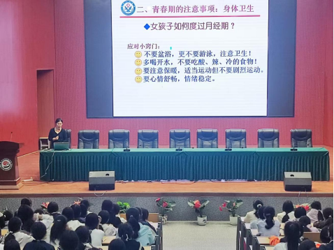 随后,息县人民医院专家团队以“青春护航,健康同行”为主题,息县人民医院科普专家杨玮首先结合青少年生理心理特点,以幽默生动的语言讲解青春期发育规律、健康生活方式及自我保护知识,通过案例分析引导学生正确看待身体变化,树立健康交友观念。然后又围绕学业压力、情绪管理、人际交往等青少年常见心理问题,通过情景模拟等方式传授心理调适技巧。她倡导“接纳情绪、主动求助”的理念,鼓励学生培养运动、阅读等健康兴趣爱好,现场师生纷纷表示受益匪浅。