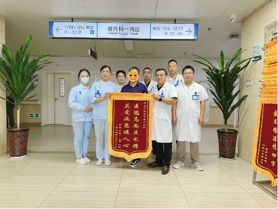 经过近半个月的精心治疗与护理,患者病情彻底治愈,顺利出院。为表达心中的感激,家属特意冒雨送来锦旗,紧紧握着医护人员的手哽咽道:“多亏了你们没日没夜地守护,一次次帮老人闯过鬼门关,才把我爸从死亡线上拉了回来!这份恩情我们永远记在心里。”