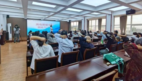 随后,主管治疗师周俊杰结合临床实践经验,生动讲解了腰腿疼痛的常见病因及预防措施,现场示范了一系列简单易学的自我保健操、放松拉伸技巧及科学姿势要点。台下听众热情高涨,纷纷跟随练习,并用手机记录下实用要点。
