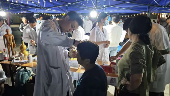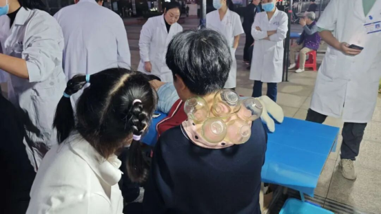 中医特色体验区更热闹——银针一闪,酸胀立减;火罐一拔,红印成“勋章”;艾绒一点,青烟袅袅带走夜风里的湿气。孩子们把推拿床当“蹦蹦床”,大人则边艾灸边自拍,发朋友圈的文案都是“今天我‘灸’是养生达人”。