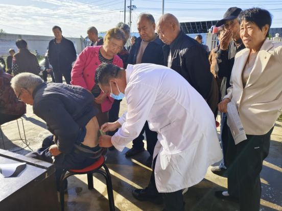义诊现场,县级心血管内科专家刘松栓一边为村民测量血压、血糖,一边与慢病患者交流指导用药,并将测量数据记录纳入慢性病管理档案;肛肠科的便携式电子肛肠镜设备前,医护人员细致检查并讲解肛肠保健要点;眼科诊台旁,老人们轮流接受眼底检查,听医生普及视力保护与老年眼病预防知识;疼痛科诊区里,医师通过推拿、针灸为颈肩腰腿疼患者缓解不适,现场示范康复锻炼动作。“不用往镇上跑,在家门口就能治住我的疼,平常咋注意医生还说得特别明白!”刚做完推拿治疗的郜阿姨连连为便捷服务点赞。