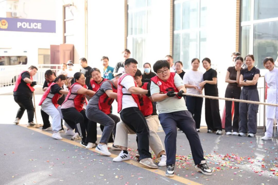 力拔山河,拧成一股绳!——拔河比赛。运动会的“重头戏”当属拔河比赛。随着裁判一声哨响,赛场瞬间成为力量的竞技场。队员们紧紧握住长绳,双脚用力蹬地,身体向后倾斜,拼尽全力向后拉拽。场边啦啦队的助威声震耳欲聋,“岐黄护卫队”“加油!”“悬壶济世队”“加油!”“中医药神队”“加油!”……呼喊声此起彼伏。每一次势均力敌的僵持,每一次精彩的逆转,都充分展现了团队协作的强大力量和永不言弃的拼搏精神。