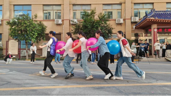 心心相印,默契大考验!——心心相印。“心心相印”项目充满了趣味与温情。比赛过程中,有的组合配合默契,健步如飞;有的则稍显“笨拙”,引得大家发出善意的笑声。这个项目虽没有激烈的对抗,却最能考验队友间的信任与默契,每一次成功的夹球前行,都是心与心的贴近。