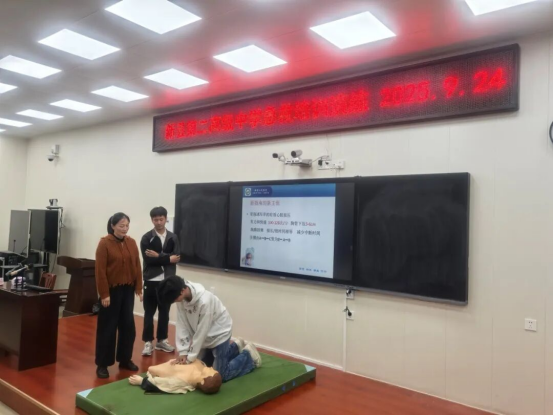 急救教育常态化 守护校园安全。新县二高党总支书记吴德华在活动中说:“将急救技能纳入素质教育,是落实‘健康中国战略的重要举措’!”据了解,该校计划每学期开展急救培训,并已在校园内配置了AED等急救资源,为全校师生的生命安全提供了有力的保障。