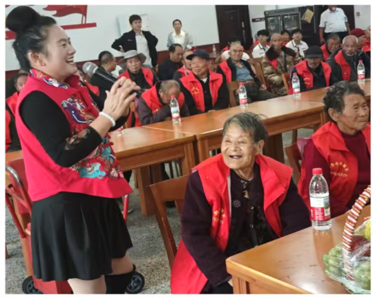 慰问组一行带着月饼、米面油、水果等节日礼品来到敬老院,向老人们致以诚挚的节日祝福。活动现场,志愿者与老人们亲切交谈,详细了解他们的身体和生活状况,叮嘱他们注意天气变化,保暖添衣保重身体,并为老人们带来了精彩的节目表演。这些温暖的祝福、情意满满的礼物和精心策划的节目,让老人们的脸上洋溢着幸福的笑容,现场充满了欢乐祥和的气氛。
