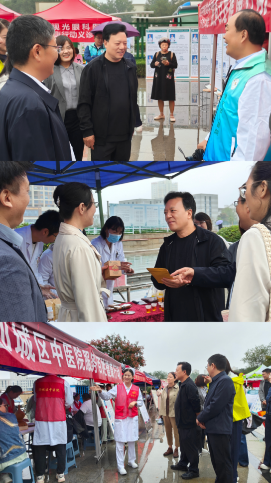 义诊活动现场,尽管天气阴雨绵绵,但前来求医问诊的群众依然络绎不绝,各知名中西医专家的诊台前人来人往,许多人慕名而来,有序排队就医,专家们耐心细致地为前来咨询的市民进行问诊、查体、治疗,并结合个体情况制订科学合理的康复方案;针对大家提出的健康问题,医护人员给予了专业的解答和建议,为长期服药的老人提供了用药建议,受到市民的广泛好评。此外,中医区域还有八段锦、刮痧、艾灸、拔罐、智能号脉等特色诊疗服务,医院养生指导团队现场表演八段锦,边演示边讲解动作要领,引导市民学习简单易操作的中医养生功法,普及“治未病”理念;漯河市中心医院、市三院、市六院3辆移动体检车还现场免费为群众提供健康检查。