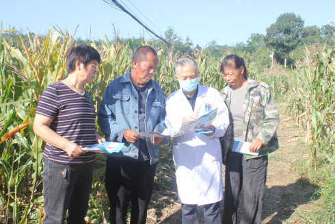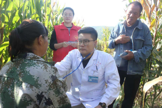 时值秋忙,专家们走进田间地头,为抢收玉米的村民听诊、测量血压,叮嘱注意事项,把服务送到群众身边。