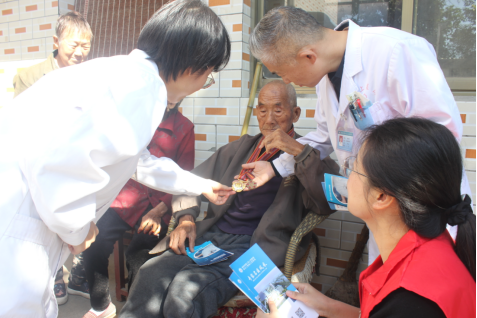 在抗美援朝英雄赵虎彦家中,专家们为老人检查身体,听老人讲述战斗故事,以实际行动传承红色基因,牢记健康使命。