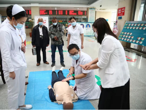 为提升公众应急能力,活动特别设置心肺复苏(CPR)实操培训区。专业医护人员利用模拟人教具,现场演示正确的心肺复苏步骤,并手把手指导市民操作。“按压位置、深度、频率都有讲究,关键时刻这些技能可能救人一命!”参与培训的市民李女士认真练习后表示收获满满。此外,胸痛中心团队重点强调“时间就是心肌”理念,呼吁公众牢记急性胸痛“立即拨打120,尽快就医”的急救原则。