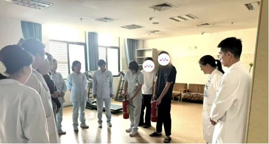 在欢乐的歌声余韵中,活动过渡到第二个核心环节——消防安全演练。作为人员密集场所,尤其是面对需要特殊关怀的患者群体,消防安全是科室管理工作的重中之重,是一切医疗活动与人文关怀的基石。科室安全员首先用浅显易懂的语言,为大家讲解了火灾的常见起因、预防措施以及紧急情况下的应对流程。重点演示了灭火器“提、拔、握、压”的使用步骤和消防水带的连接方法。医护人员与部分康复情况良好的患者纷纷上前,进行了实操体验,确保在关键时刻能够“拿得起、喷得准”。