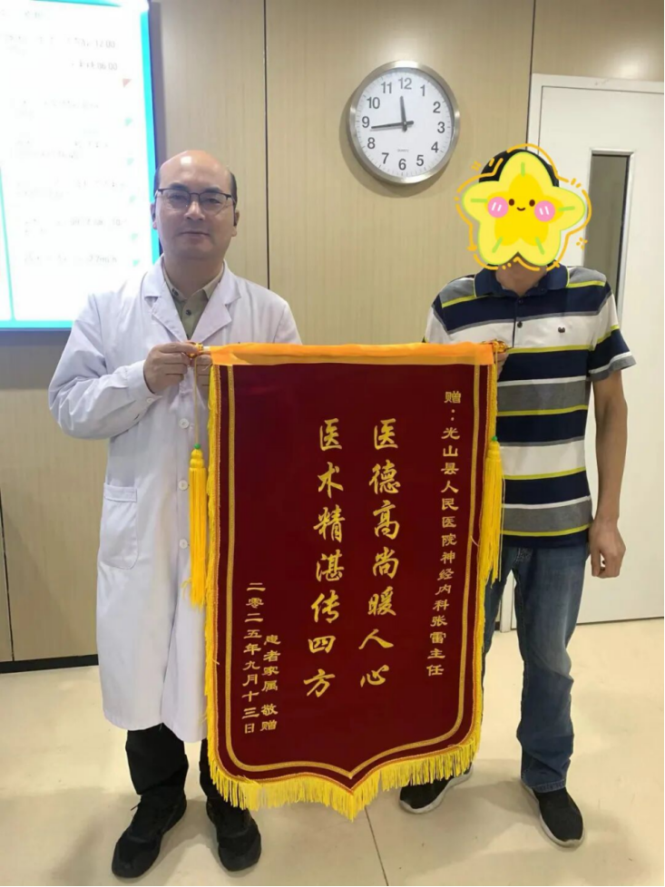 2025-10-5 来源:医药卫生网 - 医药卫生报 浏览:次医药卫生网讯(记者王明杰 通讯员张雷 张宇扬 裴仁宇)近日,家住光山县的患者家属姜先生将一面满载谢意的锦旗送至光山县人民医院神经内科医生张雷手中,感谢张雷为其母亲成功实施“颈动脉支架置入术”。这面锦旗背后,是一个关于信任、专业与生命希望的故事。