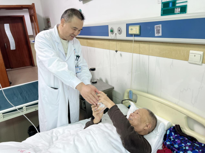 “大爷,中秋节快乐,祝您早日康复!”“大姐,尝尝月饼,咱们一起过节!”医护人员穿梭于各病区间,将象征团圆的月饼递到患者床头,并与他们亲切交流,详细询问病情,鼓励他们积极面对治疗。
