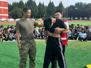 同时还现场示范讲解了海姆立克急救法:分别演示操作姿势(腹部冲击),结合“异物卡喉后无法说话、咳嗽、呼吸”等典型表现,强调“立即施救+同步呼叫120”的双重要点,避免延误最佳抢救时机。并邀请学生分组上台练习,手把手纠正按压角度、冲击力度等细节,确保大家都能掌握核心操作要领。