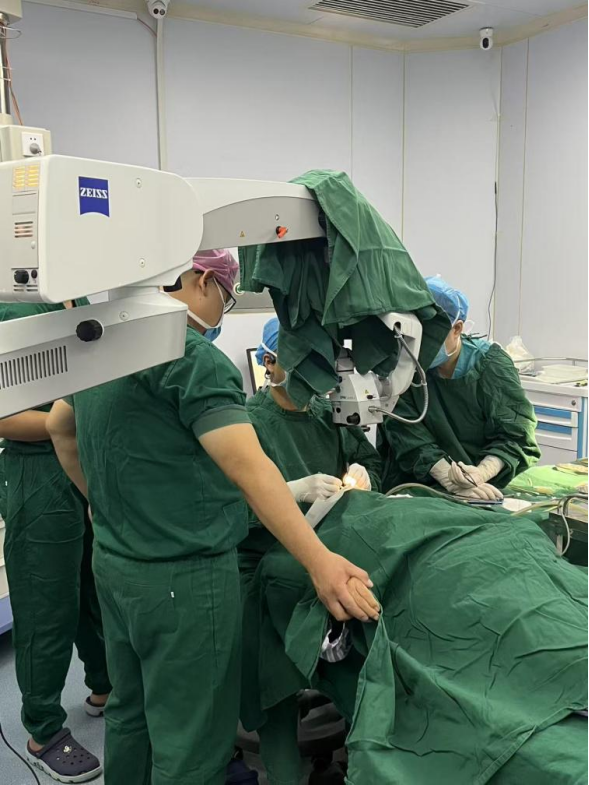 面对老人脏器功能早已衰退、手术耐受性极低、麻醉风险成倍增加的严峻挑战,眼科刘政国主任团队第一时间启动多学科协作(MDT)机制,联合老年病科、麻醉科“地毯式”评估会诊,最终量身定制了“左眼白内障超声乳化+人工晶体植入+房角分离术”的个体化手术方案。