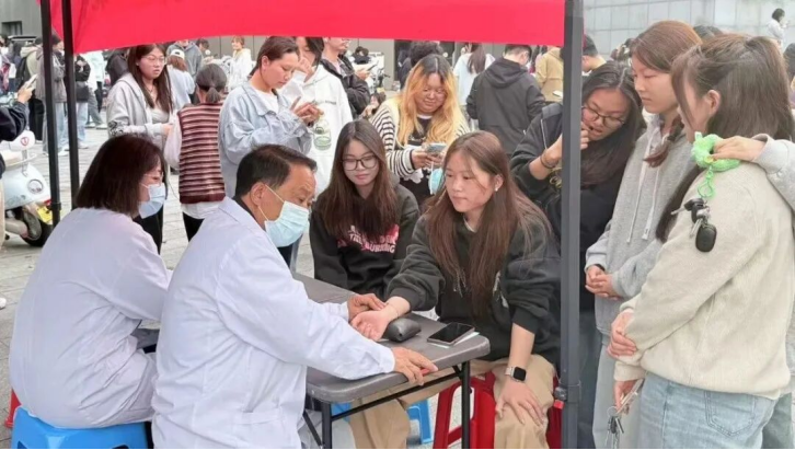 献血车旁,以往排队时的紧张与严肃氛围,被一个热闹非凡的“公益能量站”悄然取代。信阳市中医院与信阳市第二中医院的中医师们现场坐镇,为同学们把脉问诊,答疑解惑,悉心调理因学业压力引起的亚健康问题;与此同时,信阳绮丽眼科医院也为大家提供了免费的视力检测和专业的护眼建议,整个活动现场温馨有序,关怀备至。