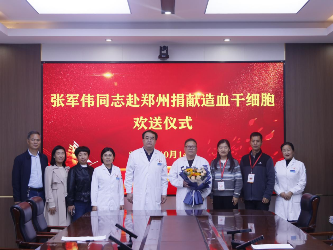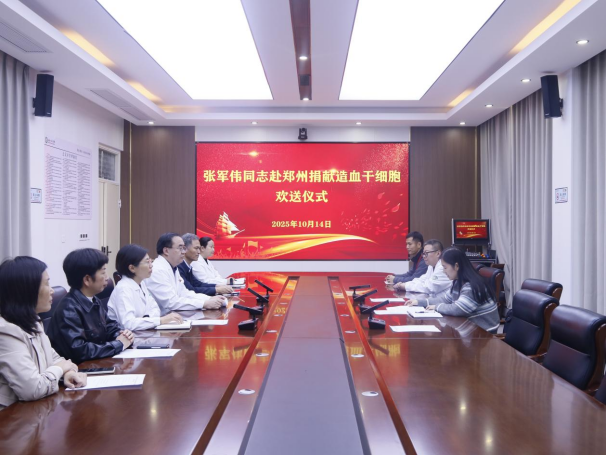 2025-10-17 来源:医药卫生网 - 医药卫生报 浏览:次医药卫生网讯(记者王平 通讯员曹琪)10月14日,浚县人民医院举行张军伟同志赴郑州捐献造血干细胞欢送仪式。浚县红十字会监事长李慧,浚县红十字会副秘书长耿峰岭,浚县人民医院党委副书记、院长孙建伟及医院班子成员出席欢送仪式。
