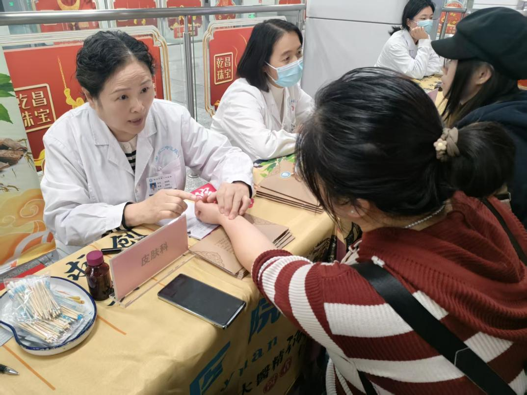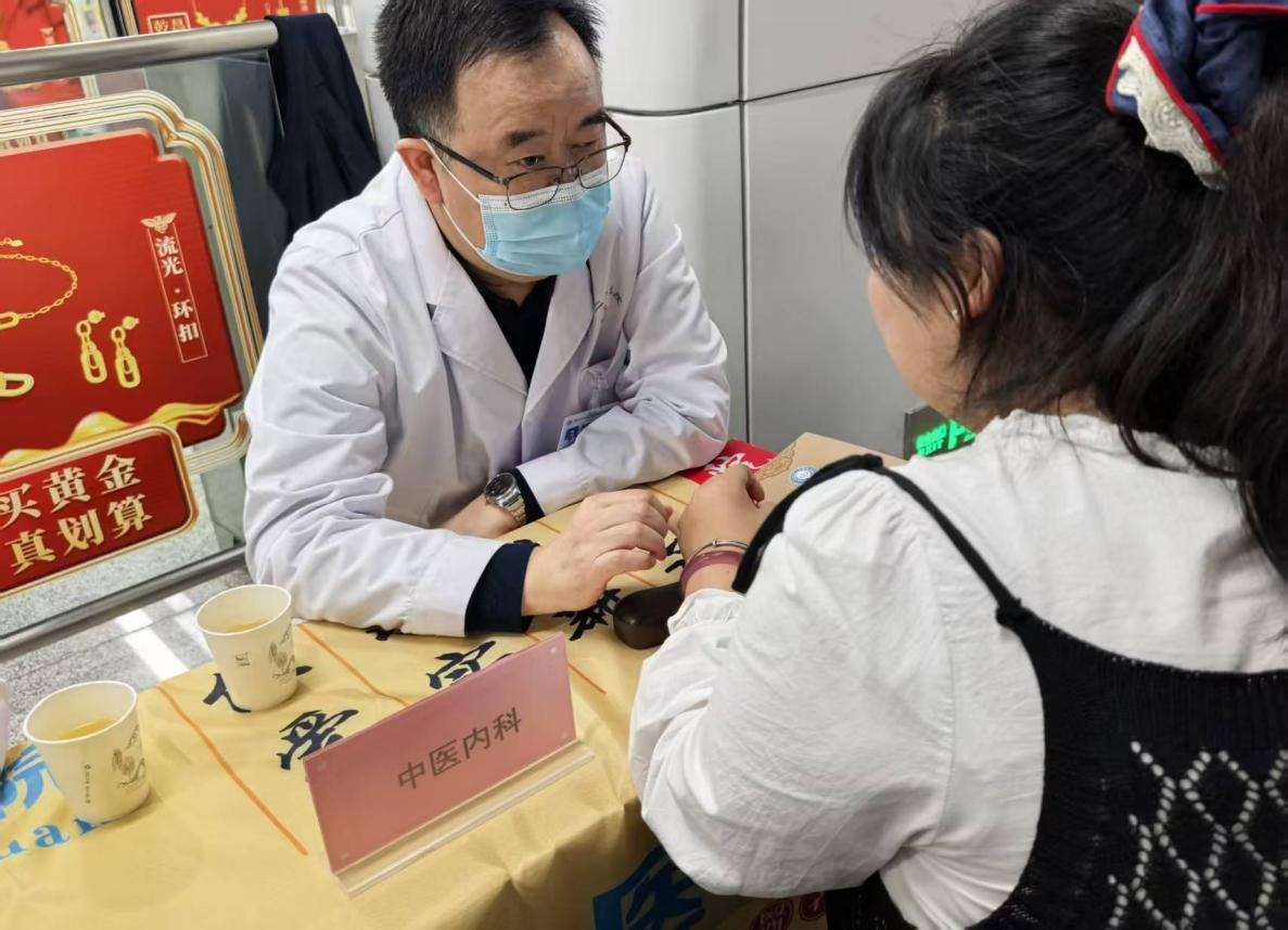 在中医专家诊疗区,来自中医内科、中医儿科、中医皮肤科、中医妇科、中医耳鼻喉科、外科、针灸推拿科等多个科室的专家们耐心细致地为前来就诊的群众把脉问诊。他们“望、闻、问、切”,精准辨证,为患者提供个性化的治疗建议和健康指导。