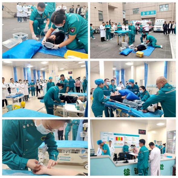 在副护士长吴庆如和护士李蒙蒙的认真准备下,本次演练的脚本立足实战需求,紧扣油田生产特点,真实模拟了演练场景。演练现场,以油区前线一员工突发意外受伤为背景,分诊台接到油区呼救电话迅速派车并立即汇报,医护人员启动高效应急机制,实施标准化救治,成功模拟了从突发事件发生、院前急救、快速转运到院内多学科协同救治的一系列标准化的紧急医学救援处置流程。整个演练过程反应迅速、分工明确,救治规范,确保伤员能够得到有序且高效的救治。