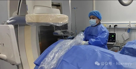 手术前,心血管内科医师王辉成功为患者置入临时心脏起搏器,为后续手术筑牢安全防线。
