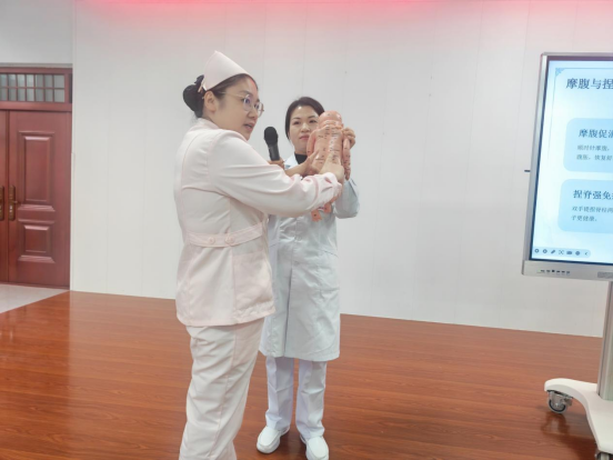 赵月玲为家长们详细介绍了中医文化的内涵及其在儿童保健方面的优势,儿科护士曹梦云还为家长演示了儿童日常护理的小儿推拿方法。