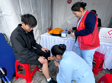 应急保障医务人员为观赛群众提供免费血压监测、心肺听诊等基础健康服务,耐心解答用药咨询。同时紧盯赛场动态,对因比赛不慎擦伤的运动员,第一时间开展伤口清洁、消毒、包扎等应急处理,以专业、高效的“贴身服务”确保赛事顺利进行,细心守护参赛健儿与观赛群众健康安全,为赛事安全举办筑牢健康防线。