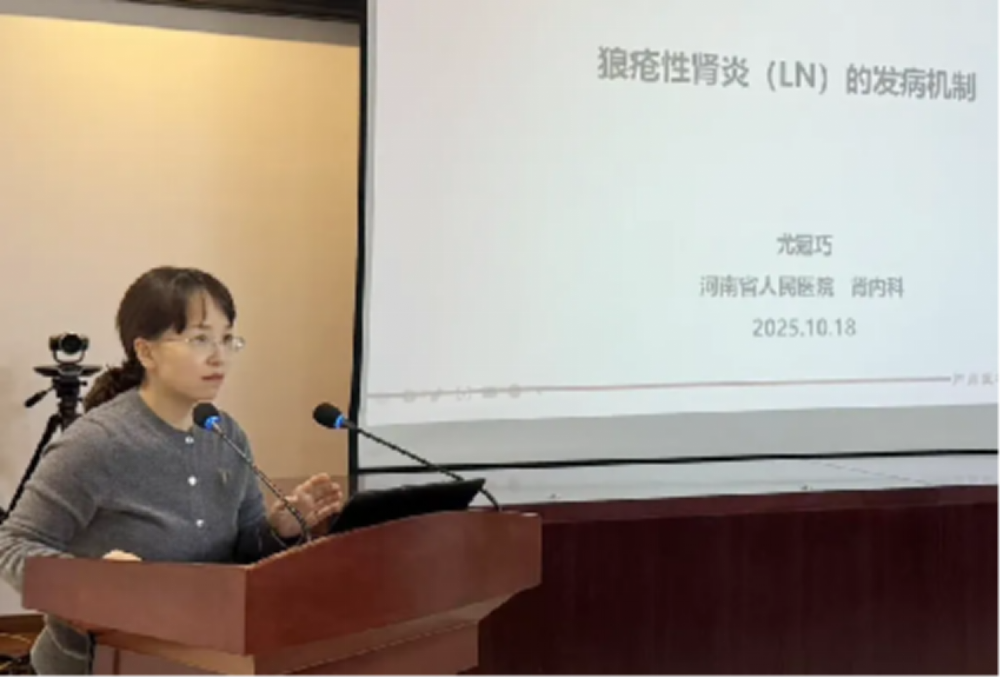 此次会议邀请河南省人民医院尤冠巧、郑州大学第一附属医院尚进等省内知名专家,分别围绕狼疮性肾炎的发病机制、血清学阴性的狼疮性肾炎病例分析,详细讲解了狼疮性肾炎发病的遗传学因素、环境诱因、免疫机制及肾脏固有细胞损伤的病理演变过程,以及血清学阴性狼疮性肾炎的诊断难点、个体化治疗方案与规避误诊漏诊的实战技巧,为参会人员提供了从基础机制到实战应用的全方位指导,进一步提升疾病诊治的精准度与规范化水平。